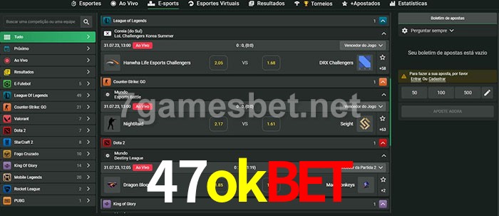 A aposta 47okbet oferece aos jogadores a experiência mais conveniente de apostas em eSports!